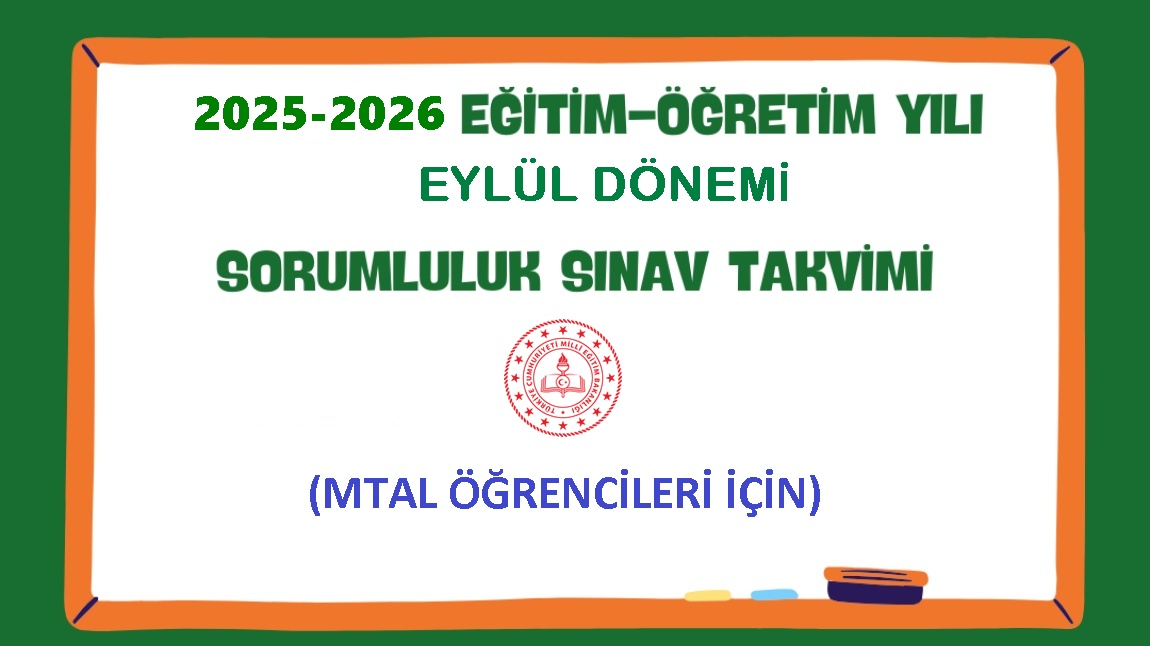 2025-2026 Eylül Dönemi MTAL Öğrencileri Sorumluluk Sınav Takvimi